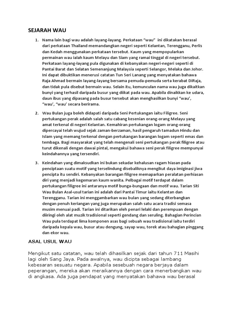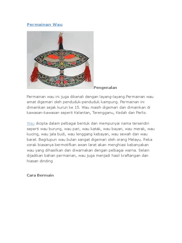 Up to 24 cash back SEJARAH WAU. Up to 24 cash back Wau daun merupakan wau tradisional yang telah dimainkan secara turun-temurun di Malaysia.